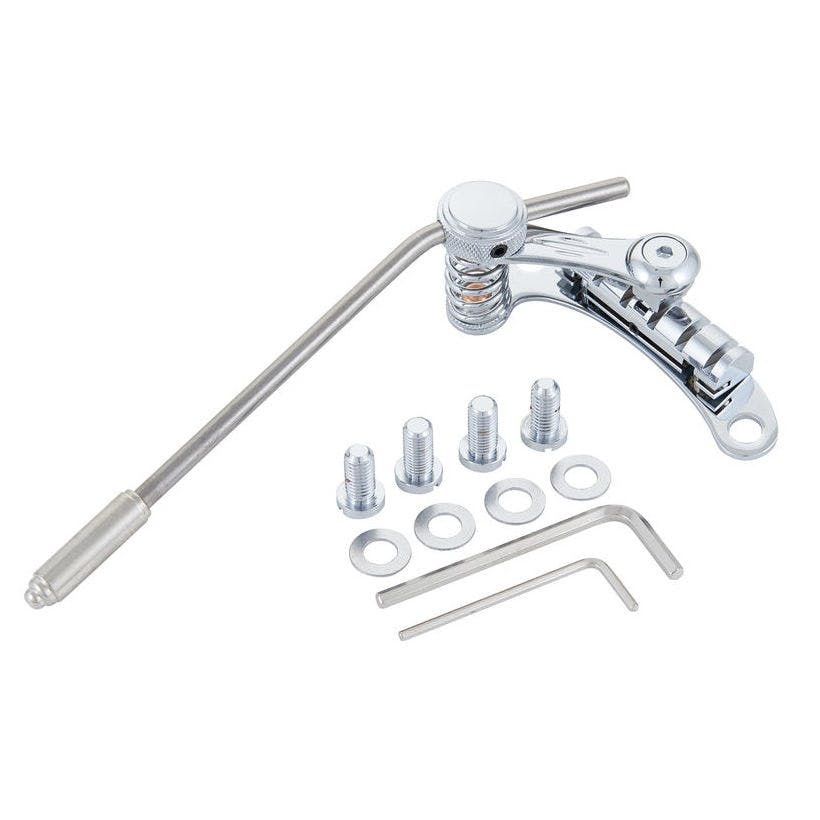 No rastilho eu achei uma Duesenberg Les Tremlo por um preço que não tive como não compra-la, que é um sistema tremolo para guitarras com ponte tune-o-matic, ele é montado diretamente na guitarra sem ser necessário nenhuma nova perfuração e ela já veio acompanhada de todas buchas e roscas, como já possuo uma semi acústica com modelo Bigsby havia pensando inicialmente nesse modelo, ou em uma Maestro Vibrola, mas quando vi o anúncio desse modelo, fiquei encantado.
